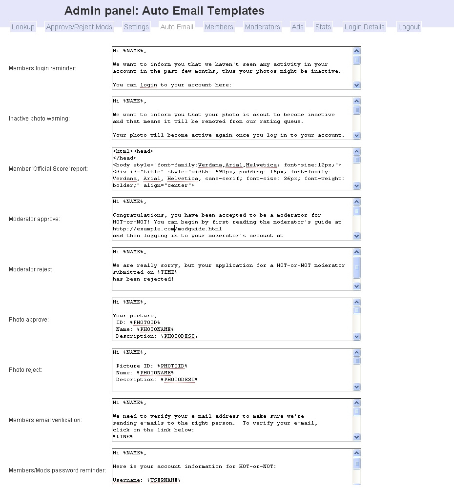| Customize photo status messages, automatic member email messages, inactive photo warnings and much more! |