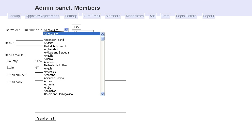 | Send mass email to members with ease. You can even subdivide groups by categories such country or state! |