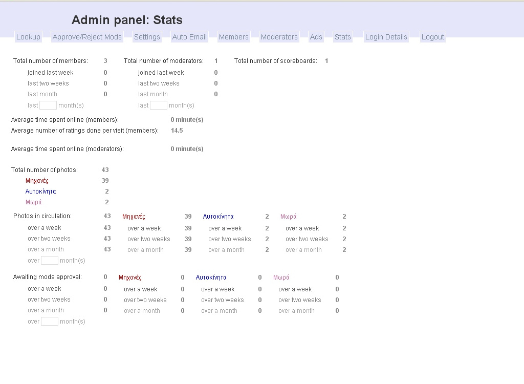 | View member and moderator stats with the touch of a button. You can generate reports on average time spent online, and average number of ratings done per visit quickly and easily. |